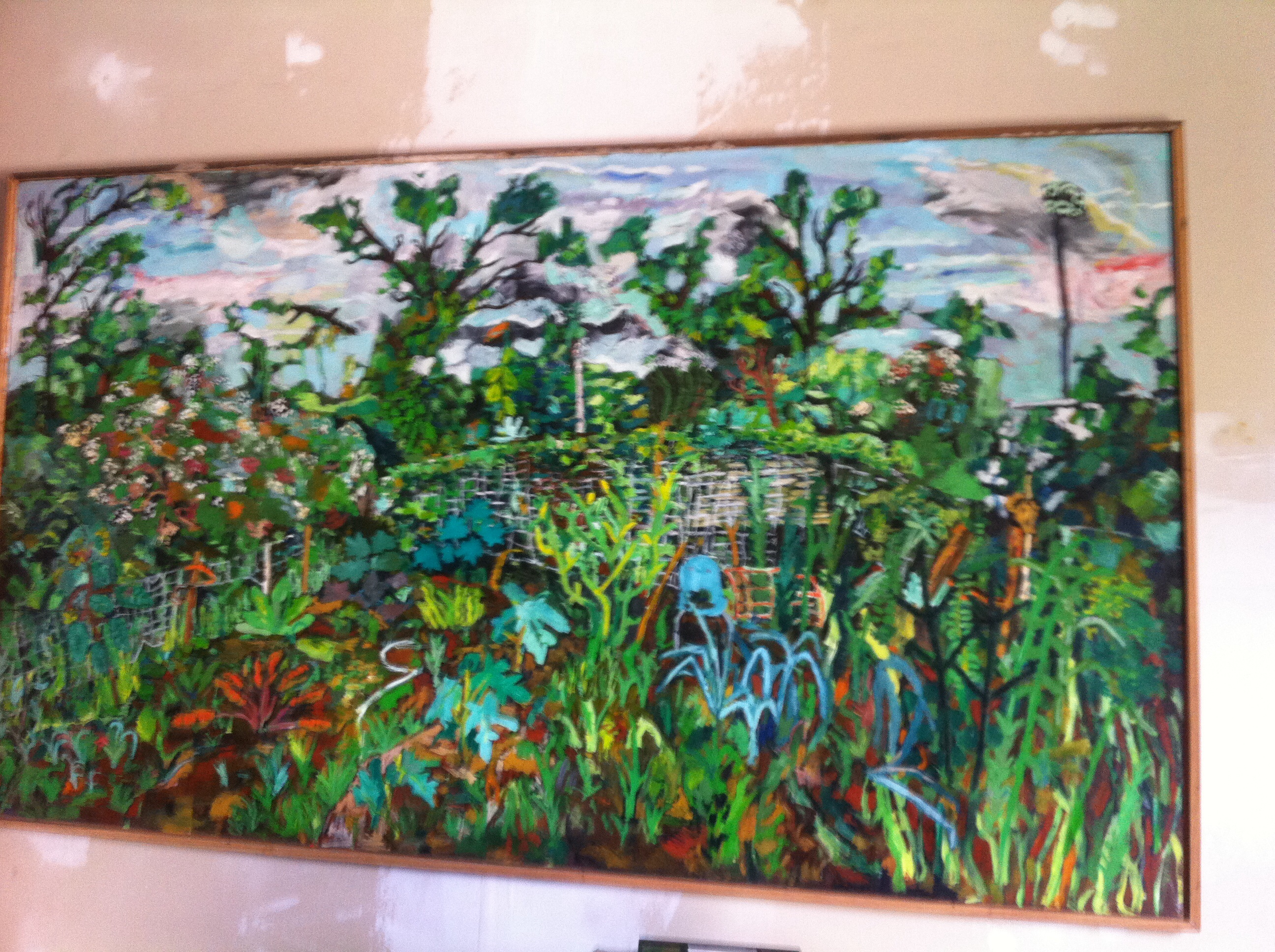 Much of my creative efforts this summer where spent on other things (music, movies, ect.) but I did make this large painting of the garden. It’s nice to work on a large scale painting again, it’s just hard to know what to do with them after there done….(also a sunset in the neighborhood).
